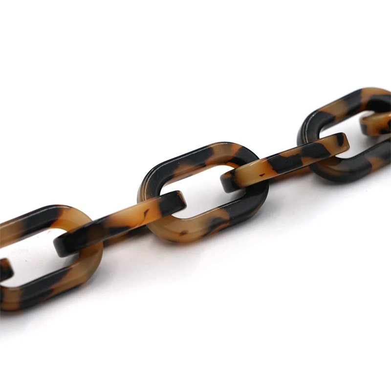 Από την άποψη της επιλογής υλικού, χρησιμοποιούμε ίνες οξικού υψηλής ποιότητας ως το κύριο υλικό της λαβής αλυσίδας με καφετί, το οποίο έχει καλή αντοχή και αντοχή στη φθορά, εξασφαλίζοντας ότι η αλυσίδα σακουλών δεν είναι εύκολο να παραμορφωθεί ή να σπάσει την καθημερινή χρήση. Η επιφάνεια της αλυσίδας σακουλών αντιμετωπίζεται με μια ειδική διαδικασία, η οποία όχι μόνο καθιστά το μοτίβο κελύφους χελώνας πιο ρεαλιστικό και ανθεκτικό, αλλά και ενισχύει την ικανότητα κατά της οξείδωσης και διατηρεί το χρώμα φωτεινό και νέο για μεγάλο χρονικό διάστημα. Ταυτόχρονα, το βάρος της αλυσίδας έχει εξεταστεί προσεκτικά και αισθάνεται ακριβώς όταν κρατιέται στο χέρι, χωρίς να προκαλεί υπερβολική επιβάρυνση στον φορέα.