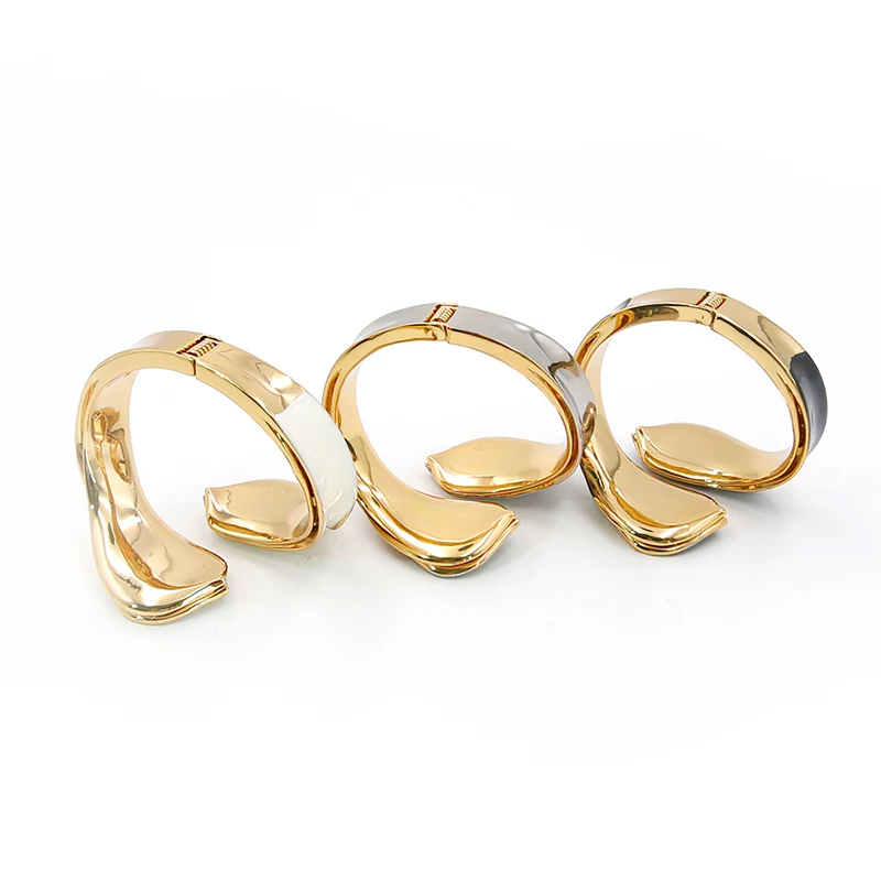 Το επιθυμητό πρότυπο επιμετάλλωσης αναπτύσσεται από το εργοστάσιο επένδυσης σύμφωνα με τις απαιτήσεις σας για βραχιόλι σμάλτου με χρυσό. Η χρήση τεχνολογίας με χρυσό στο βραχιόλι σμάλτου με χρυσό δίνει στο κόσμημα ένα οπτικό αποτέλεσμα παρόμοιο με το σμάλτο υψηλής θερμοκρασίας.