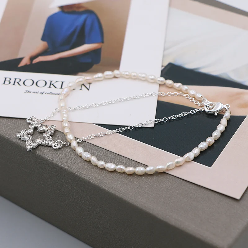Το επίκεντρο του βραχιολιού Pearl είναι ο σχεδιασμός διπλού στρώματος. Το ανώτερο στρώμα είναι λεπτό και ζεστά μαργαριτάρια, και το κάτω στρώμα είναι μια εξαιρετική μεταλλική αλυσίδα. Οι δύο συμπληρώνουν ο ένας τον άλλον και δείχνουν μια μοναδική αίσθηση στρώσης. Το βραχιόλι Pearl είναι επίσης διακεκομμένο με ζιρκόνια. Κάθε λεπτομέρεια έχει σχεδιαστεί προσεκτικά και διατεταγμένο με κλιμακωτό τρόπο, καθιστώντας όλο το βραχιόλι πιο λαμπερό και κινούμενο. Χρησιμοποιούμε μαργαριτάρια υψηλής ποιότητας και μεταλλικές αλυσίδες υψηλής ποιότητας. Τα μαργαριτάρια έχουν εξαιρετική στιλπνότητα και μπορούν να ξεπεράσουν την λευκότητα του δέρματος. Η μεταλλική αλυσίδα είναι γεμάτη υφή και έχει κάποιο βαθμό αντι-αλλεργίας, κατάλληλο για όλους τους τύπους δέρματος.